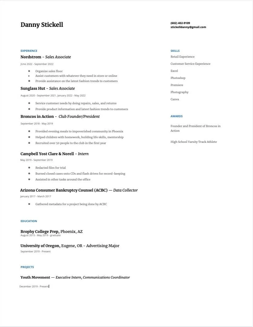 My Name is Danny Stickell and I am a senior at the University of Oregon. I am an Advertising major and Sports Business minor. I am from phoenix Arizona and I am a big sports fan and sneaker head. I love being creative and problem solving.