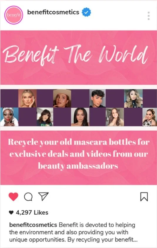 Here is a print mockup promoting Benefit’s recycling initiative featuring some of their brand ambassadors.