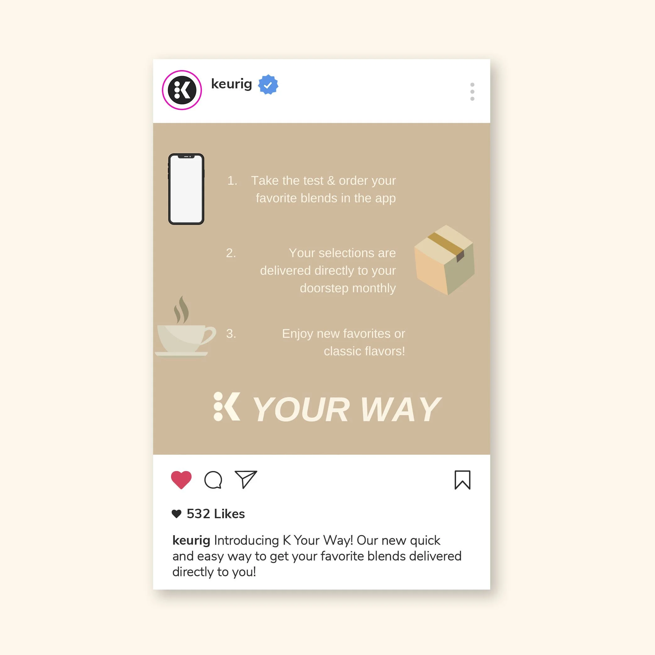 K Your Way is our idea of a subscription service for Keurig. You could either pick which coffee you liked and that would be deliver directly to you or you could take a quiz where you would be recommended flavors based on your preferences.